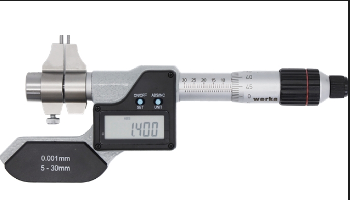 適用于測量外形尺寸 特殊接觸面·不銹鋼材質,帶微調滾輪·三個按鈕:OFF/ON,ZERO,mm/inch·CR2032·塑料盒包裝